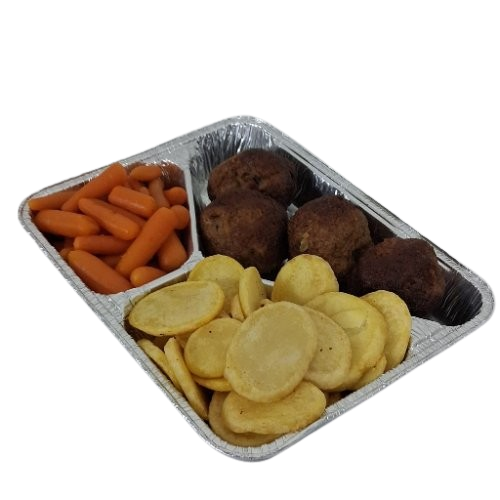 Gebakken aardappels met wordteltjes en balletjes gehakt